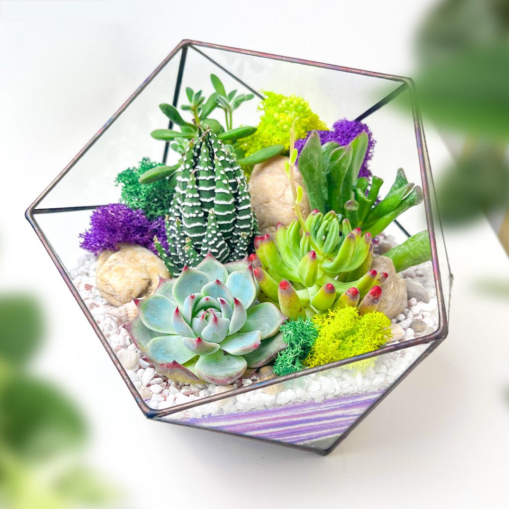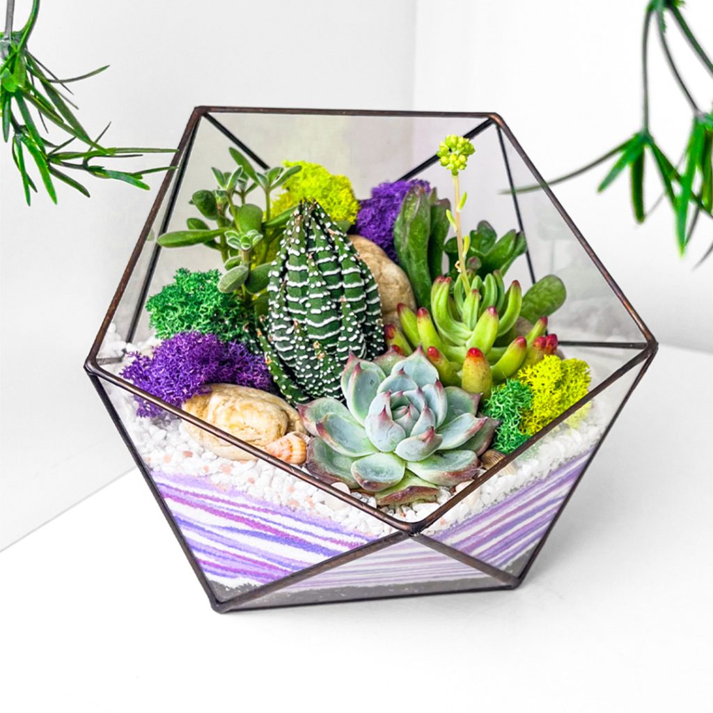 Детальна покрокова інструкція зі створення флораріуму в геометричній скляній вазі.