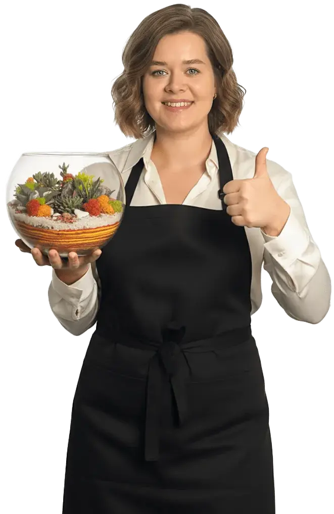 - Більше 5 років досвіду роботи з сукулентами та флораріумами